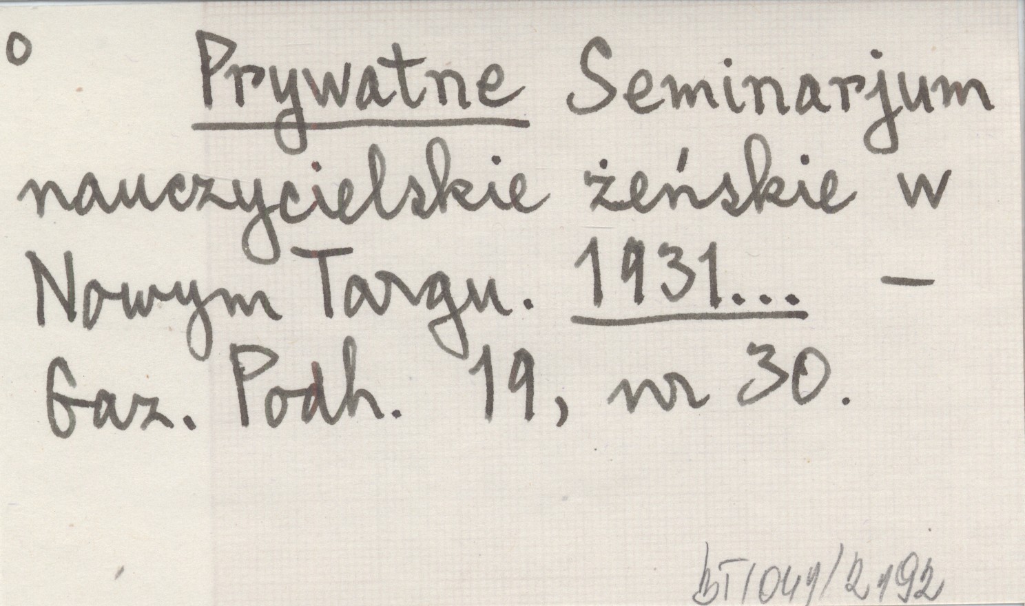 Prywatne Seminarjum nauczycielskie żeńskie w Nowym Targu. 1931...