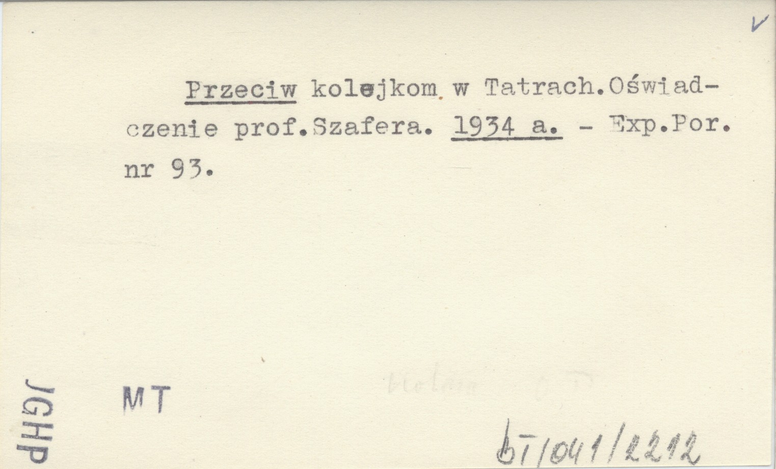 Przeciw kolejkom w Tatrach. Oświadczenie prof. Szafera. 1934 a