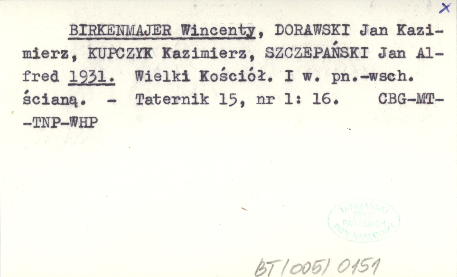 BIRKENMAJER Wincenty DORAWSKI, Jan Kazimierz. ; KUPCZYK, Kazimierz. ; SZCZEPAŃSKI, Jan Alfred. ; 1931 Wielki Kościół. I w. pn.-wsch. ścianą.
