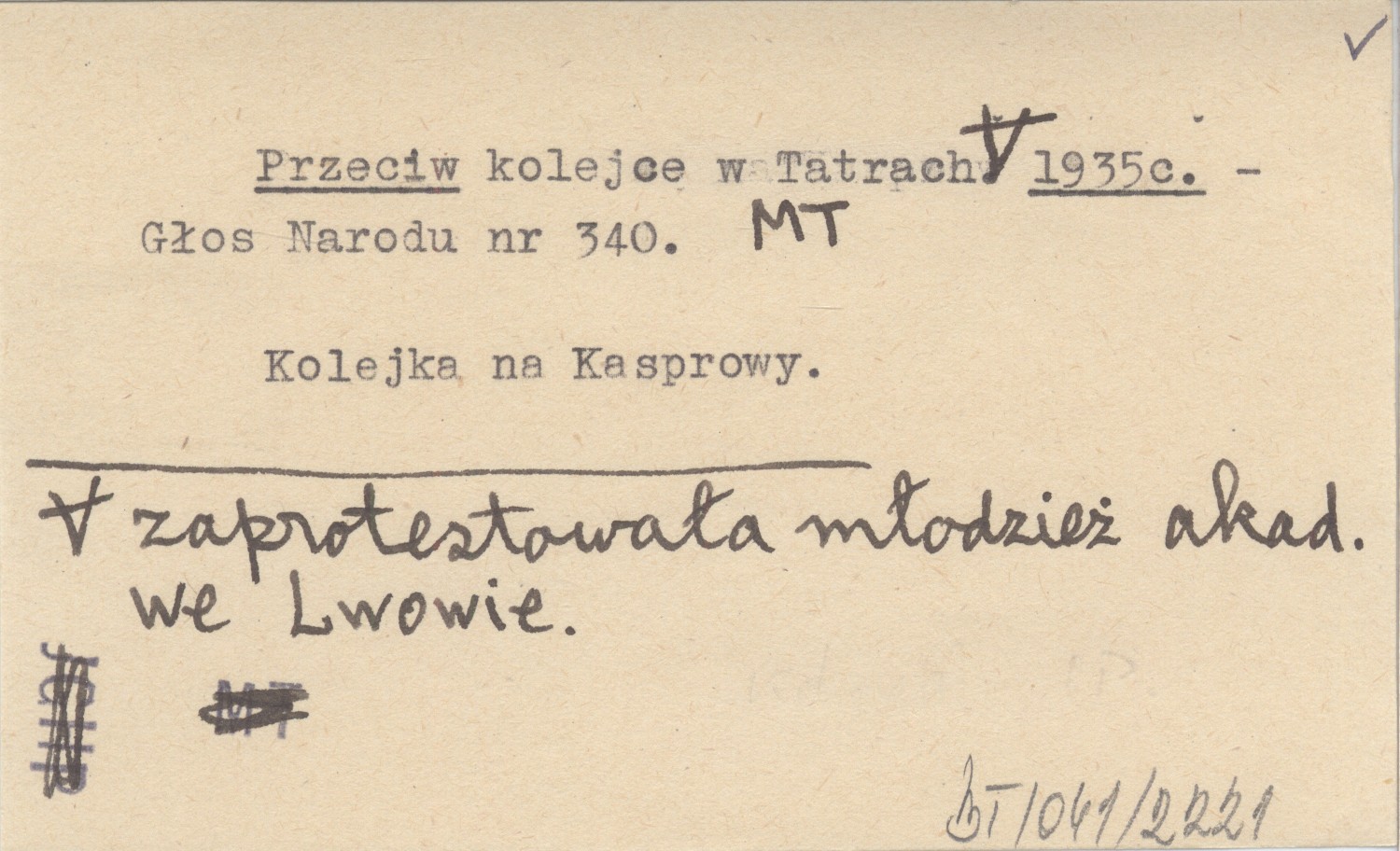 Przeciw kolejce w Tatrach zaprotestowała młodzież akad. we Lwowie. 1935 c