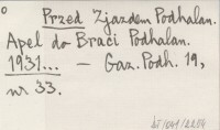 Przed Zjazdem Podhalan. Apel do Braci Podhalan. 1931...