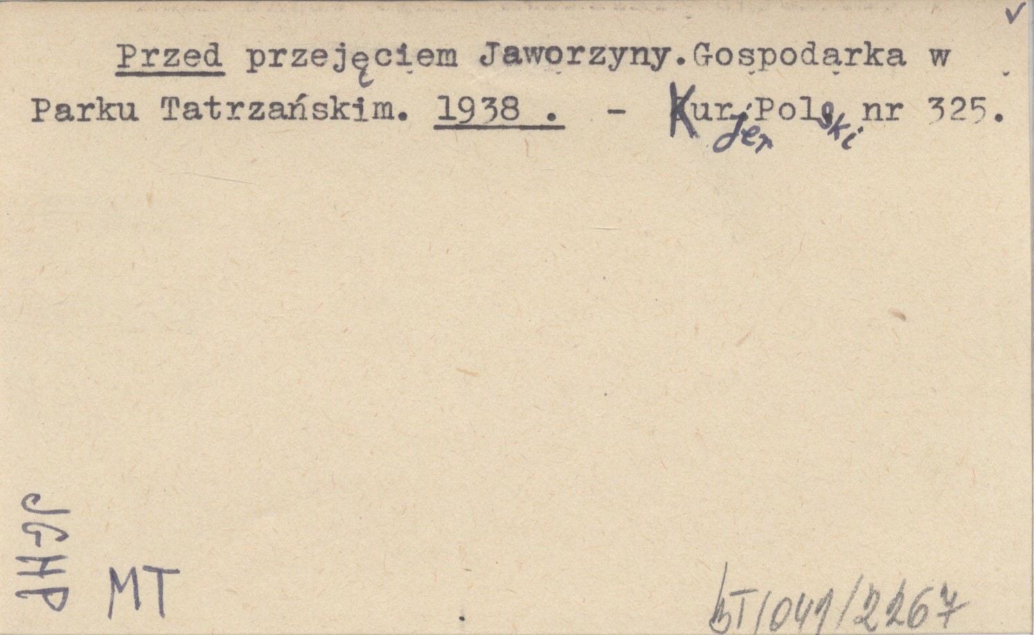 Przed przejęciem Jaworzyny. Gospodarka w Parku Tatrzańskim. 1938