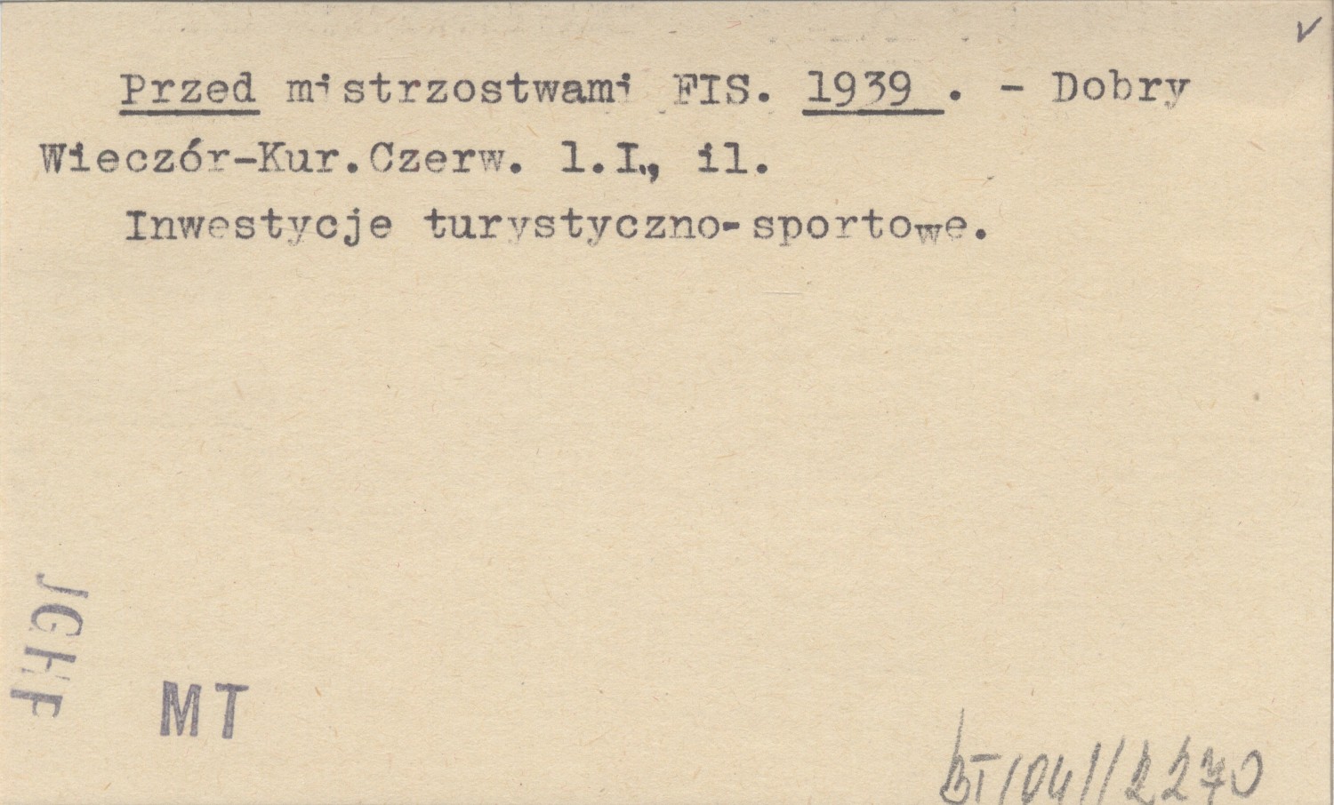 Dobry Wieczór - Kurier Czerwony, 1 I, il. Inwestycje turystyczno-sportowe.