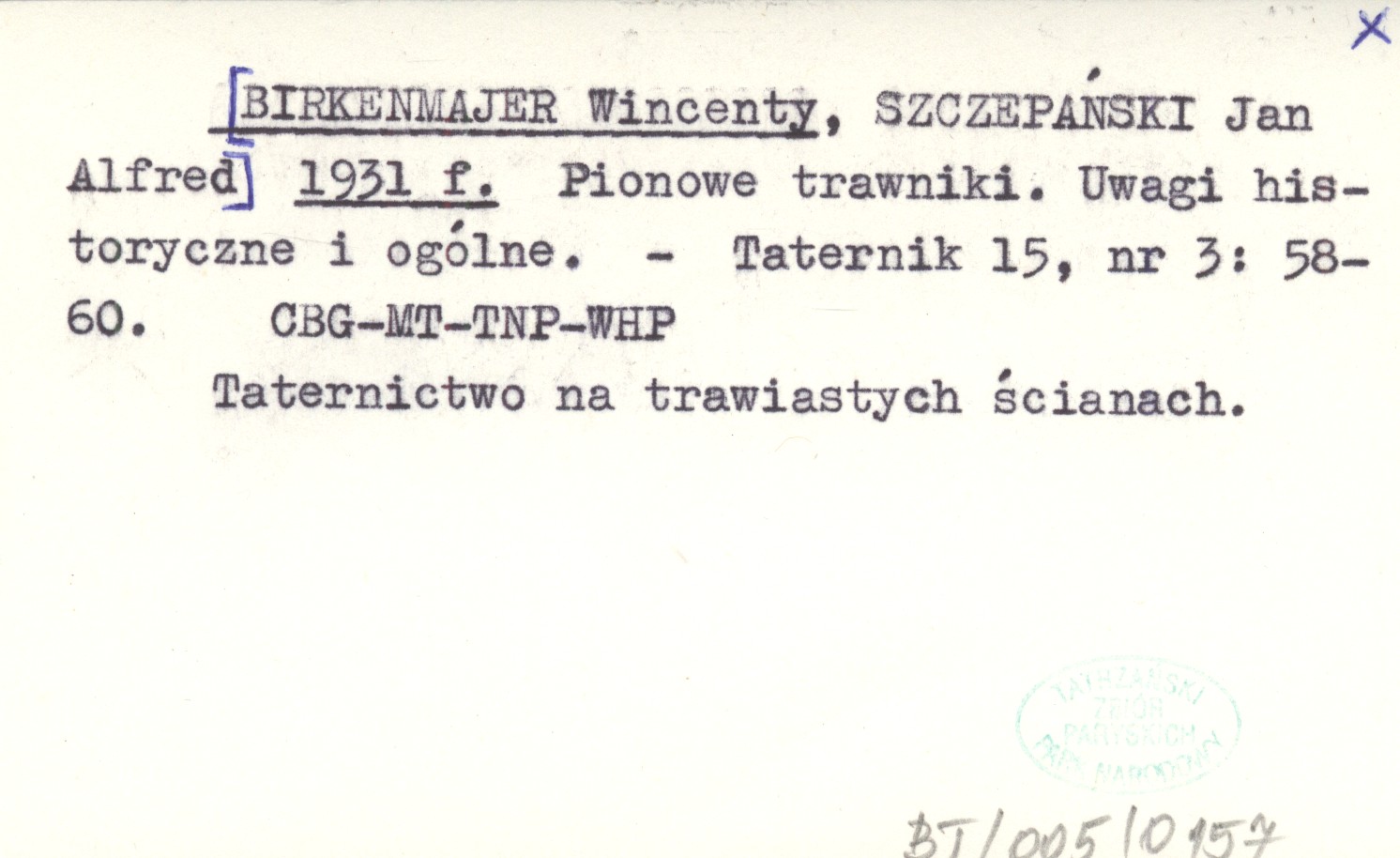 [BIRKENMAJER Wincenty] [SZCZEPAŃSKI, Jan Alfred]. ; 1931 f Pionowe trawniki. Uwagi historyczne i ogólne.