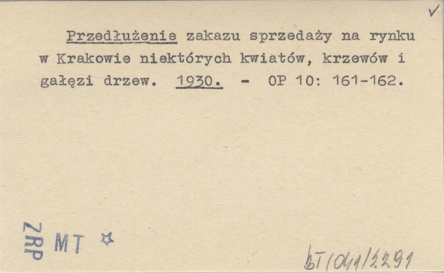 Przedłużenie zakresu sprzedaży na rynku w Krakowie niektórych kwiatów, krzewów i gałęzi drzew. 1930