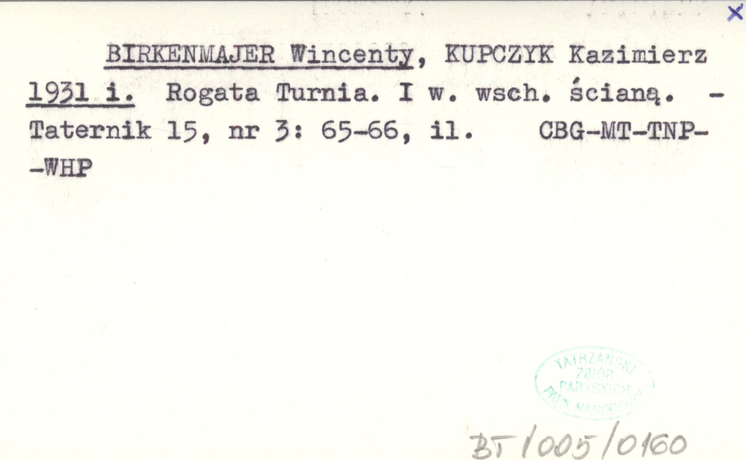 BIRKENMAJER Wincenty KUPCZYK, Kazimierz. ; 1931 i Rogata Turnia. I w. wsch. ścianą.