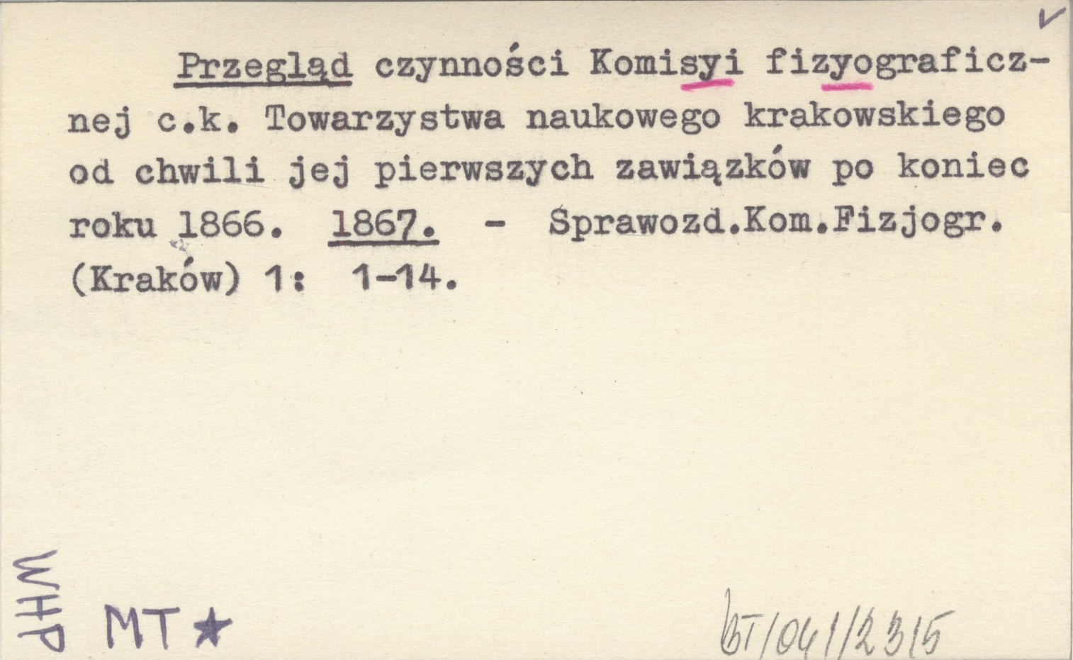 Przegląd czynności Komisyi fizyograficznej c.k. Towarzystwa naukowego krakowskiego od chwili jej pierwszych zawiązków po koniec roku 1866. 1867
