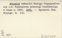 Przegląd czynności Komisyi fizyograficznej c.k. Towarzystwa naukowego krakowskiego w ciągu roku 1869. 1870