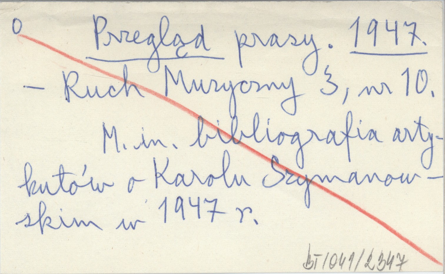 Ruch Muzyczny, 3, nr 10. M. in. bibliografia artykułów o Karolu Szymanowskim w 1947 r.