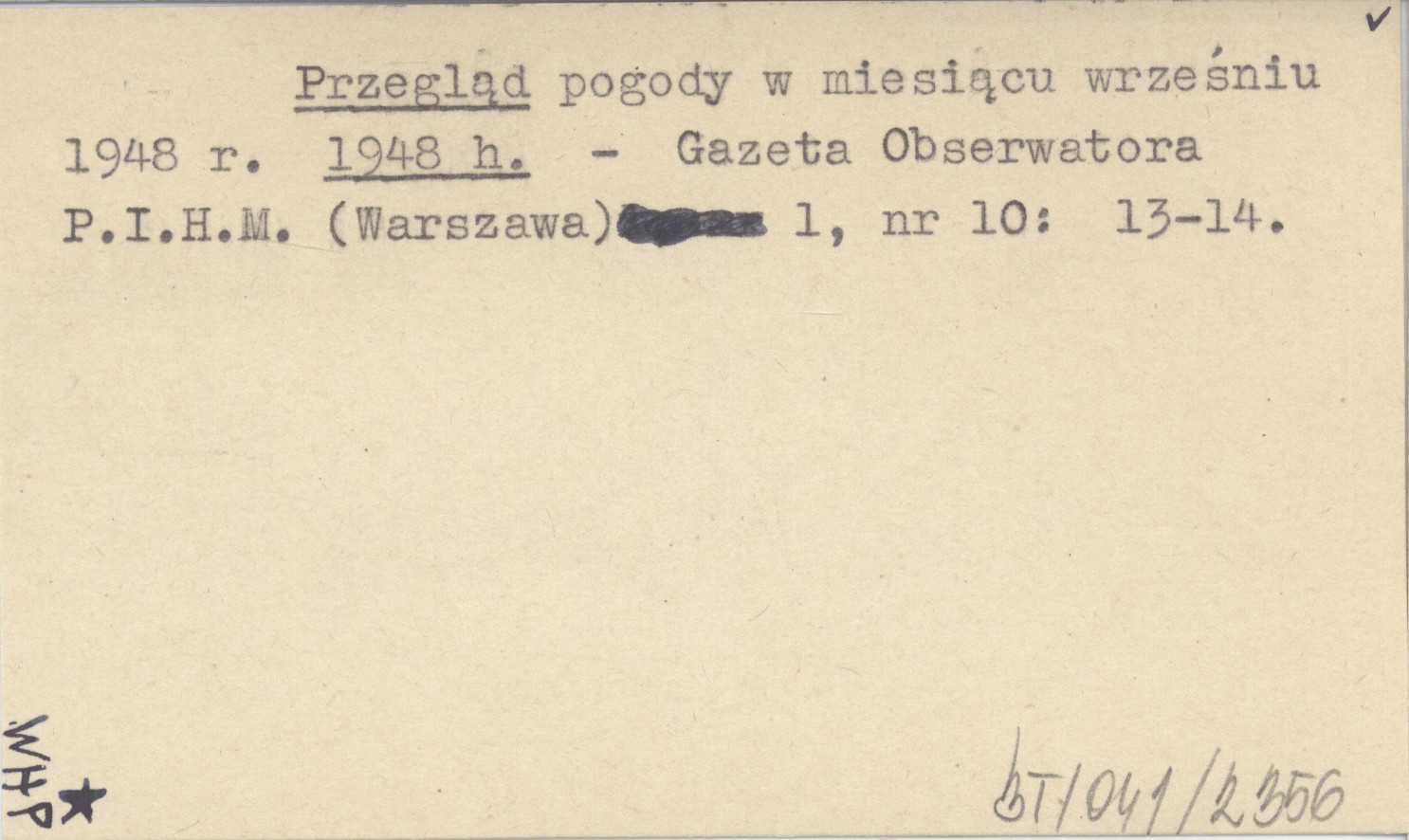 Przegląd pogody w miesiącu wrześniu 1948 r. 1948 h
