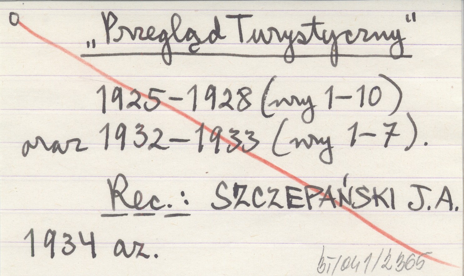 Przegląd Turystyczny, 1925-1928, nr 1-10 ; 1932-1933, nr 1-7. REC: SZCZEPAŃSKI J.A. 1934 az