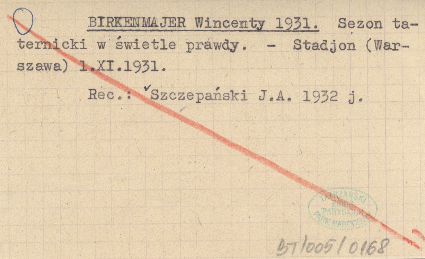 Stadjon (Warszawa) , 1.XI.1931. REC: SZCZEPAŃSKI J.A. 1932 j