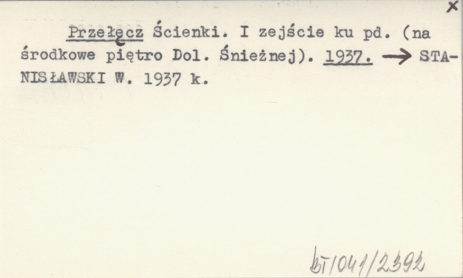 Przełęcz Ścienki. I zejście ku pd. (na środkowe piętro Dol. Śnieżnej). 1937
