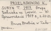 PRZELASKOWSKI K. SURYN, T. ; 1907 Grupa technicka we Lwowie.