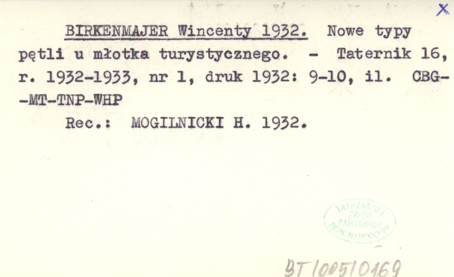 BIRKENMAJER Wincenty 1932 Nowe typy pętli u młotka turystycznego.