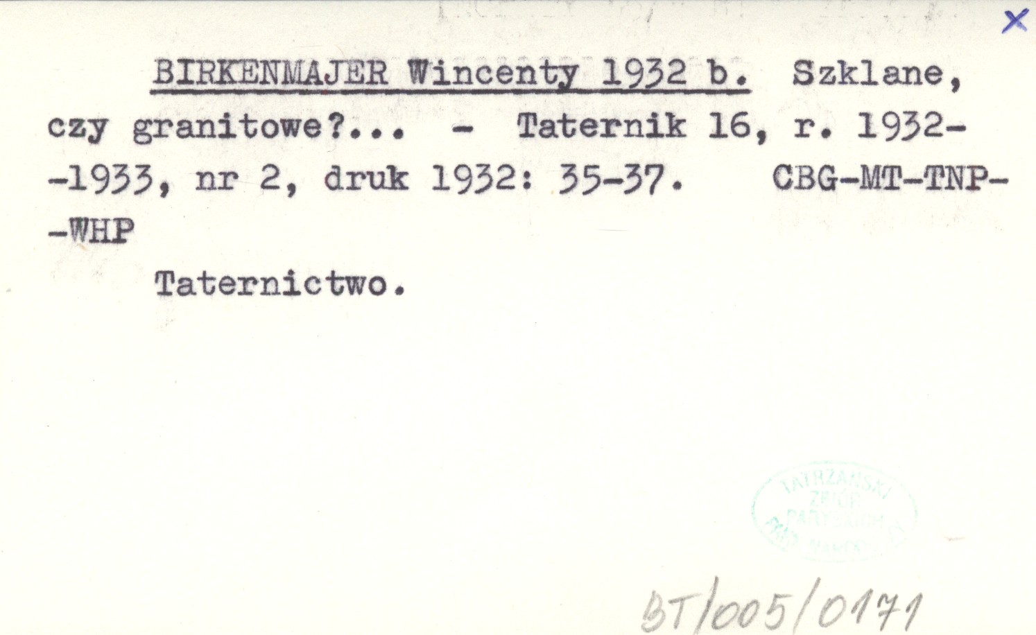 BIRKENMAJER Wincenty 1932 b Szklane, czy granitowe?...