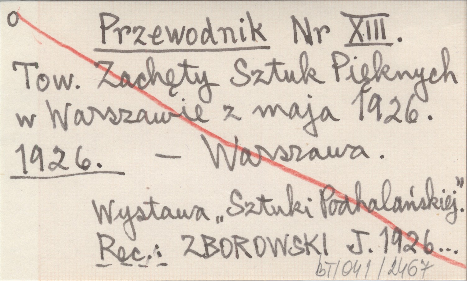 Przewodnik Nr XIII. Tow. Zachęty Sztuk Pięknych w Warszawie z maja 1926. 1926