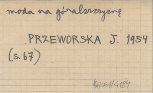 Warszawa , 111 s., il., okł. (il.), 20x14 cm. Tatr i Podtatrza dotyczą s. 66-68, 70-78, 81-108, 109.