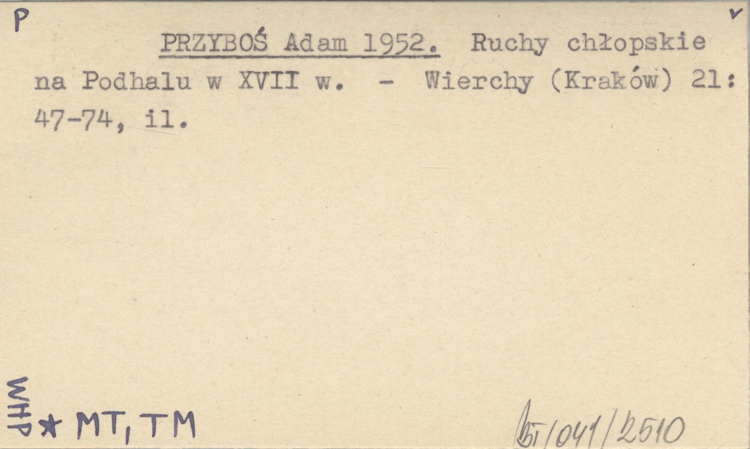 PRZYBOŚ Adam 1952 Ruchy chłopskie na Podhalu w XVII w.