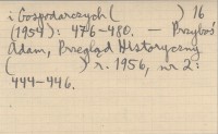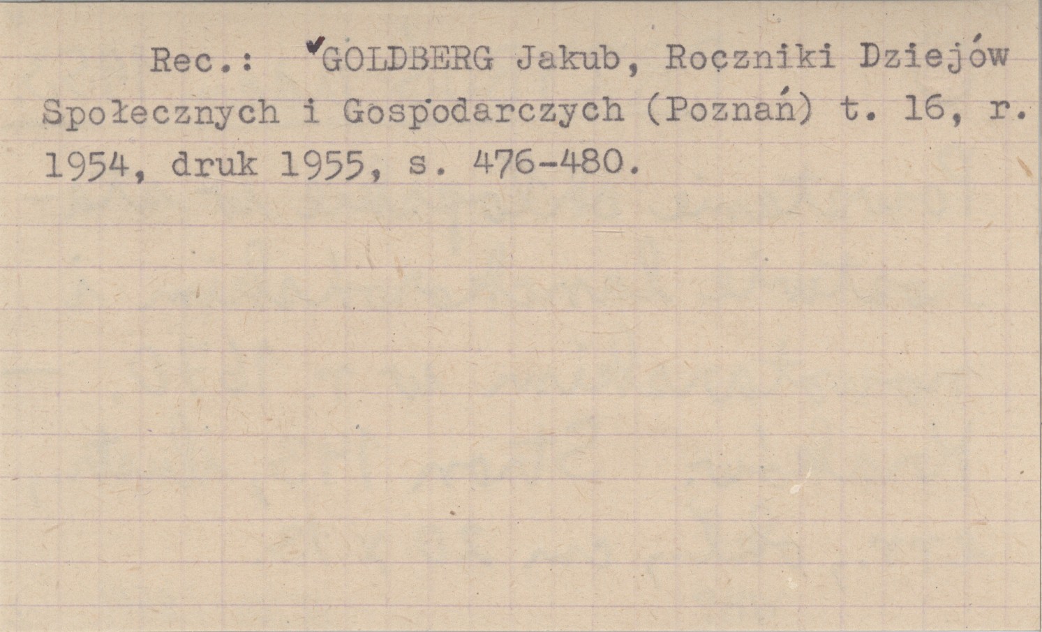 Kraków , 143 s., il., err., okł., 20x13 cm. REC: GOLDBERG Jakub, Roczniki Dziejów Społecznych i Gospodarczych (Poznań) t. 16, r. 1954, druk 1955: 476-480 ; PRZYBOŚ Adam, Przegląd Historyczny r. 1956, nr 2: 444-446 ; BIENIARZÓWNA Janina, Przegląd Historyczny 46 (1955), nr 1-2 ; TYROWICZ Marian, Wierchy (Kraków) 23 (1954): 290-291 ;