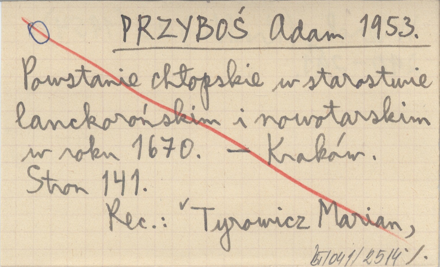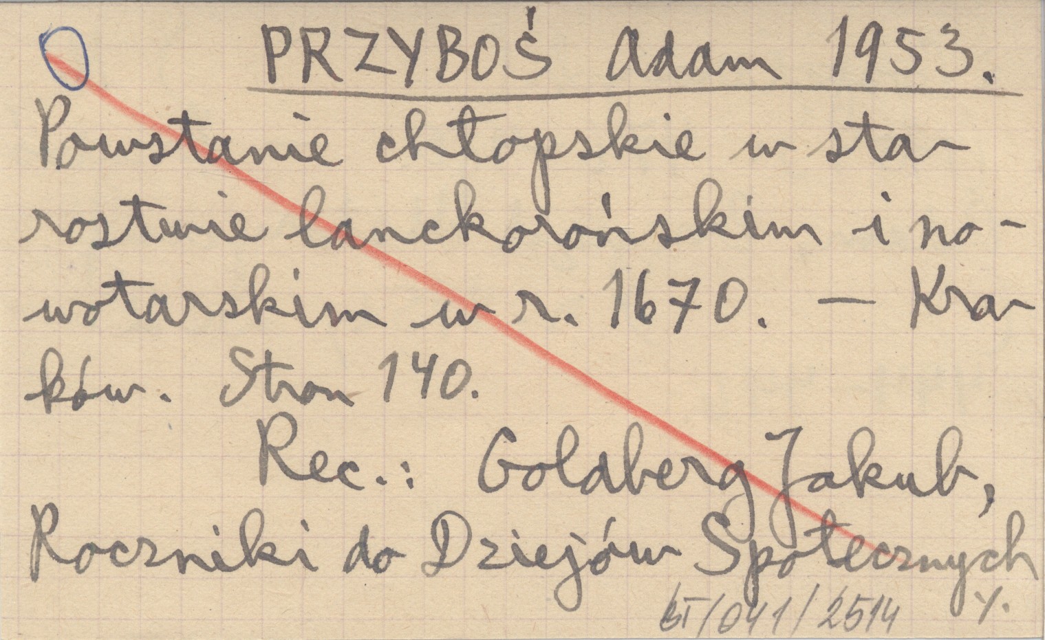 PRZYBOŚ Adam 1953 Powstanie chłopskie w starostwie lanckorońskim i nowotarskim w r. 1670.