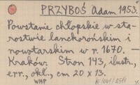 PRZYBOŚ Adam 1953 Powstanie chłopskie w starostwie lanckorońskim i nowotarskim w r. 1670.