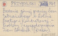 PRZYBYLSKI Jerzy 1969 Badanie górnej granicy lasu tatrzańskiego w Dolinie Białego i Kondratowej.