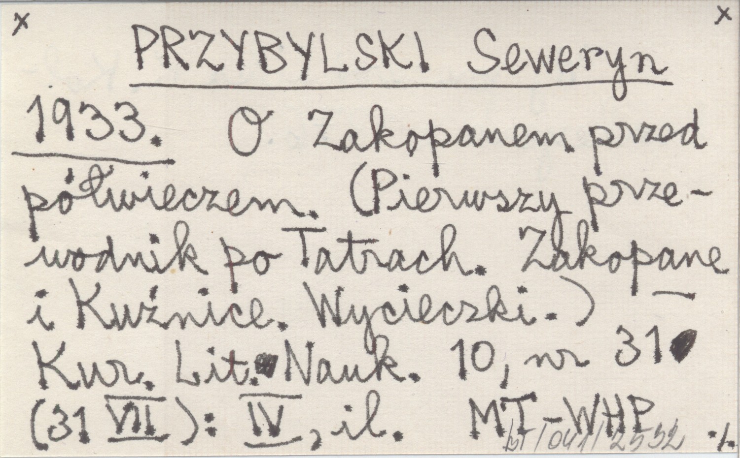 PRZYBYLSKI Seweryn 1933 O Zakopanem przed półwieczem. (Pierwszy przewodnik po Tatrach. Zakopane i Kuźnice. Wycieczki).