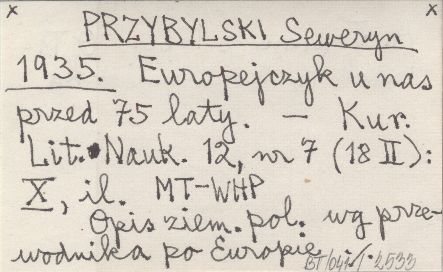 PRZYBYLSKI Seweryn 1935 Europejczyk u nas przed 75 laty.