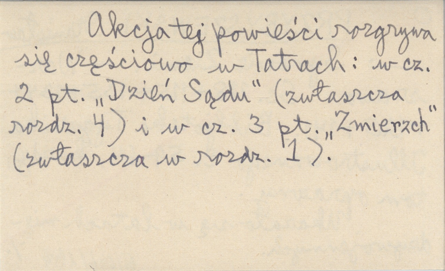 Warszawa (Bibljoteka Tygodnika Illustrowanego, t. 59-64) , 118, 115, 135, 134, 125, 141 s. Akcja tej powieści rozgrywa się częściowo w Tatrach: w cz. 2 pt. "Dzień Sądu" (zwłaszcza rozdz. 4) i w cz. 3 pt. "Zmierzch" (zwłaszcza w rozdz. 1). Ukazało się w latach międzywojennych.