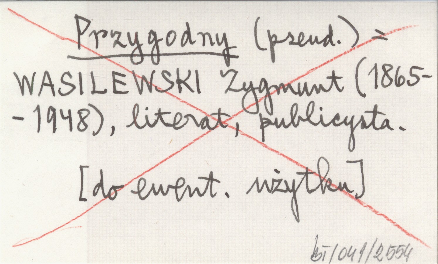 Przygodny WASILEWSKI Zygmunt 1865-1948. Literat, publicysta. [do ewent. użytku]