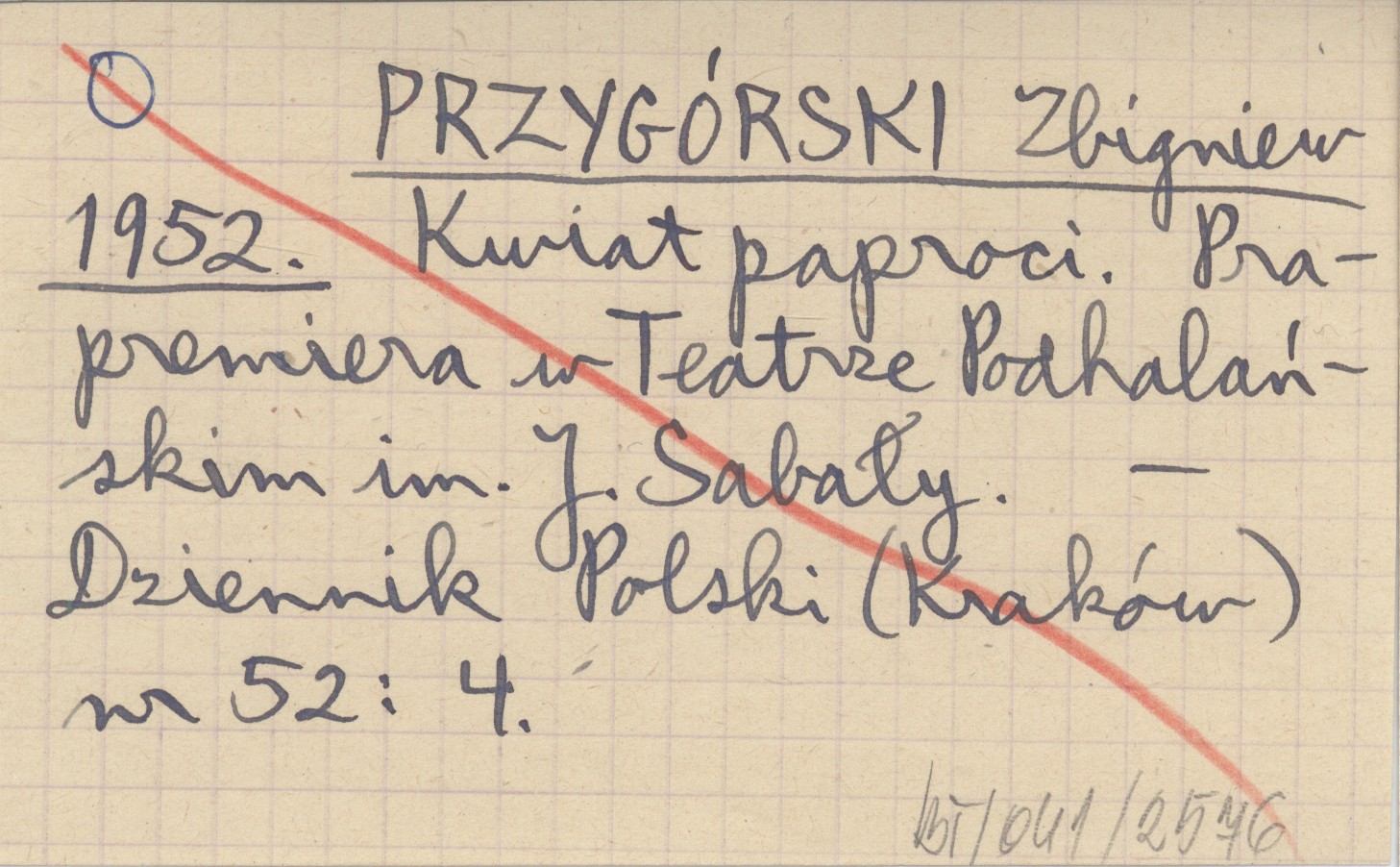 PRZYGÓRSKI Zbigniew 1952 Kwiat paproci. Prapremiera w Teatrze Podhalańskim im. J. Sabały.