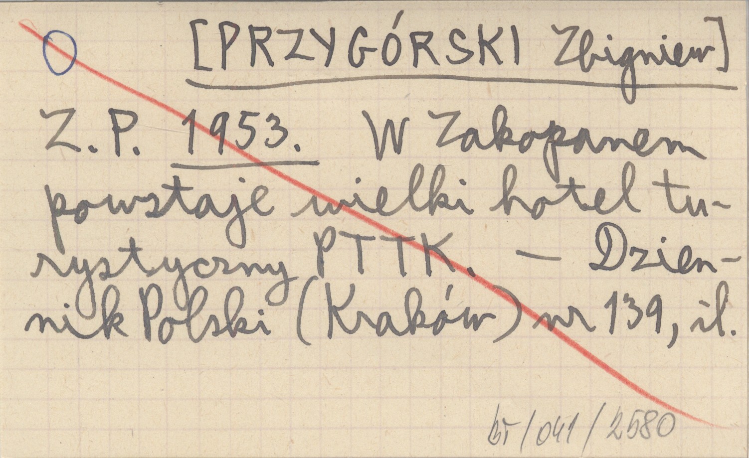 Z. P. [PRZYGÓRSKI Zbigniew] 1953 W Zakopanem powstaje wielki hotel turystyczny PTTK.