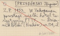 Z. P. [PRZYGÓRSKI Zbigniew] 1953 W Zakopanem powstaje wielki hotel turystyczny PTTK.