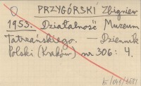 PRZYGÓRSKI Zbigniew 1953 Działalność Muzeum Tatrzańskiego.