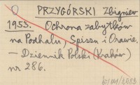 PRZYGÓRSKI Zbigniew 1953 Ochrona zabytków na Podhalu, Spiszu i Orawie.