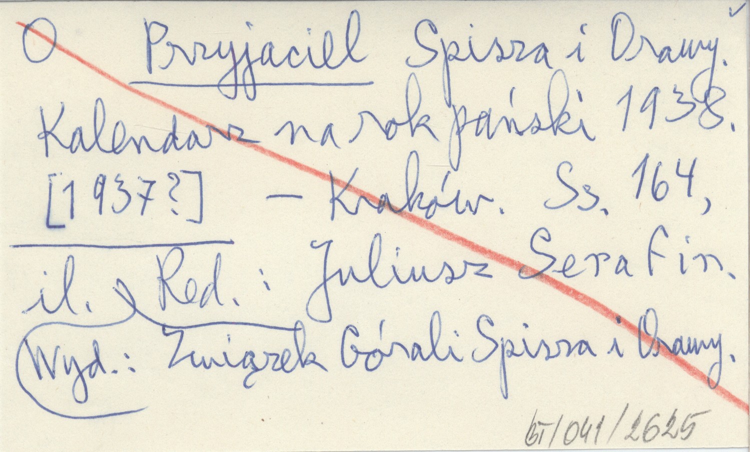RED: SERAFIN, Juliusz. ; Przyjaciel Spisza i Orawy. Kalendarz na rok pański 1938. [1937?]