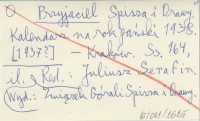 RED: SERAFIN, Juliusz. ; Przyjaciel Spisza i Orawy. Kalendarz na rok pański 1938. [1937?]