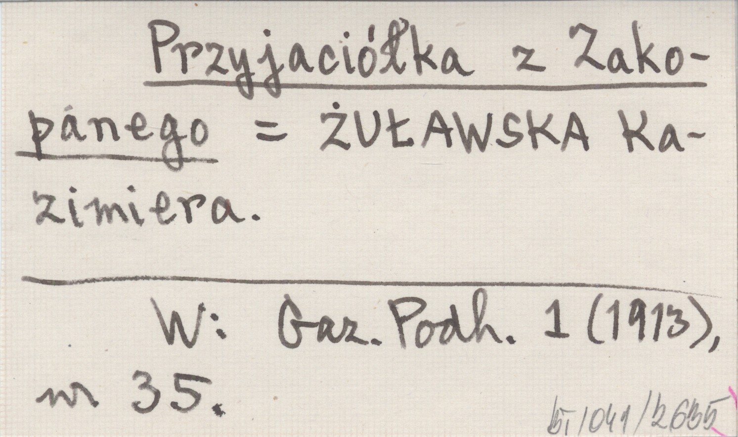 Przyjaciółka z Zakopanego ŻUŁAWSKA Kazimiera Gazeta Podhalańska 1 (1913), nr 35.