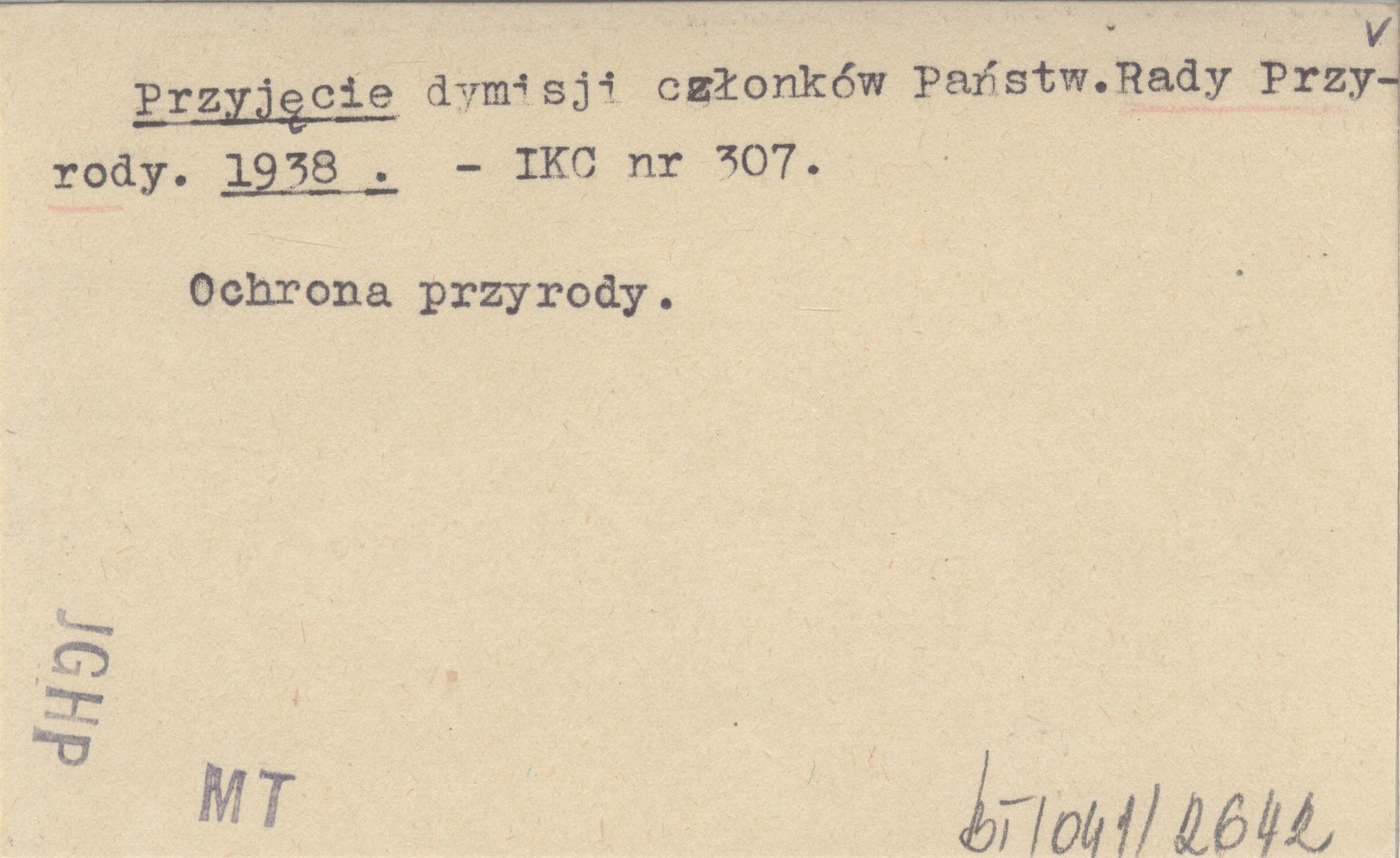 Przyjęcie dymisji członków Państw. Rady Przyrody. 1938