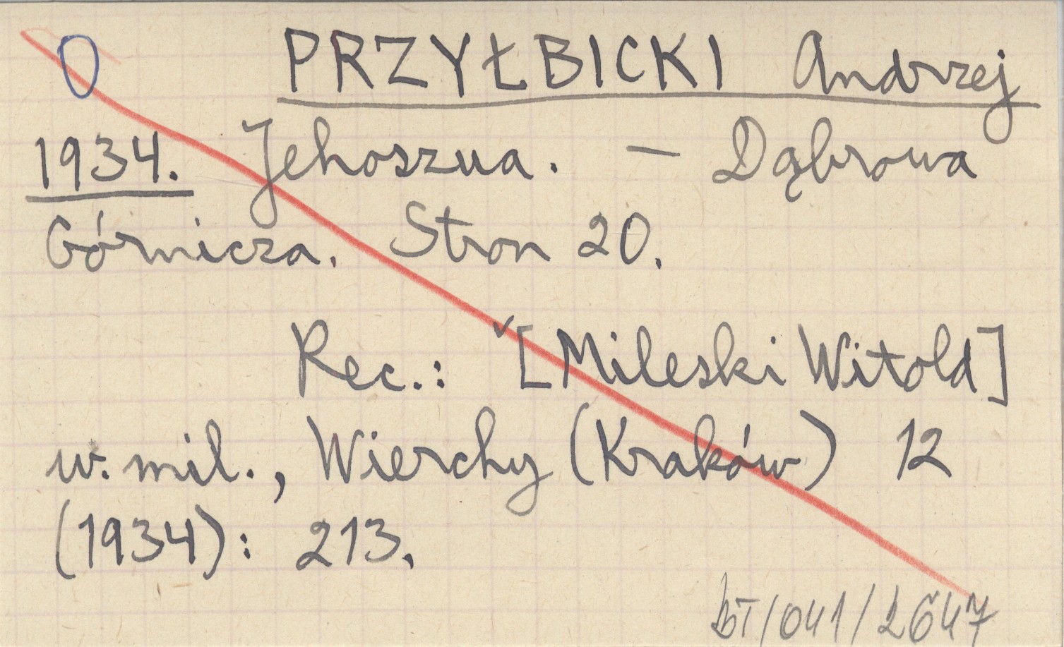 Dąbrowa Górnicza , 20 s. REC: [MILESKI Witold] w. mil., Wierchy (Kraków) 12 (1934): 213.