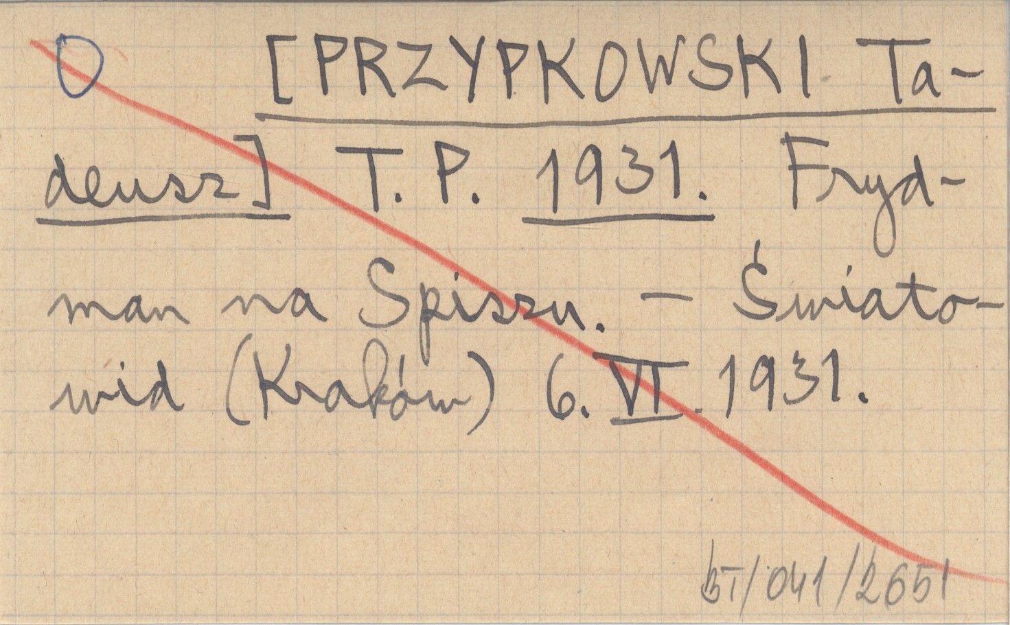 T. P. [PRZYPKOWSKI Tadeusz] 1931 Frydman na Spiszu.