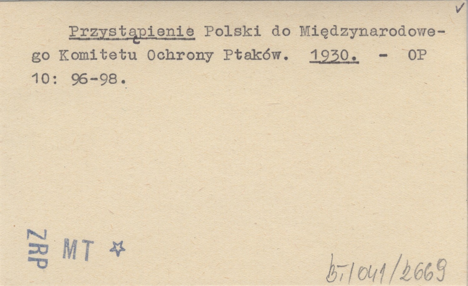 Przystąpienie Polski do Międzynarodowego Komitetu Ochrony Ptaków. 1930