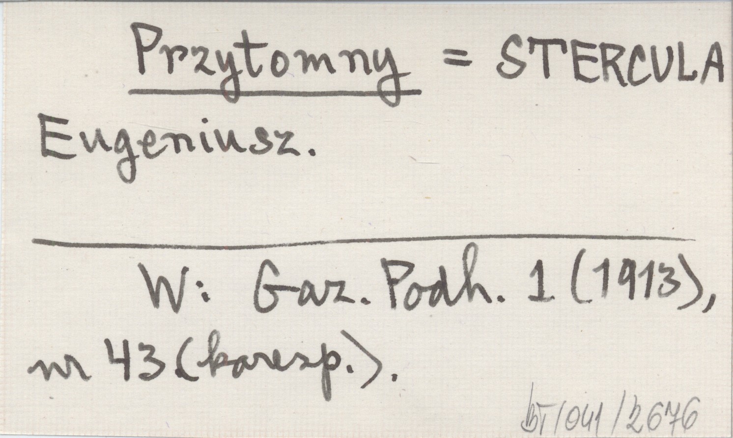 Przytomny STERCULA Eugeniusz Gazeta Podhalańska 1 (1913), nr 43 (koresp.).