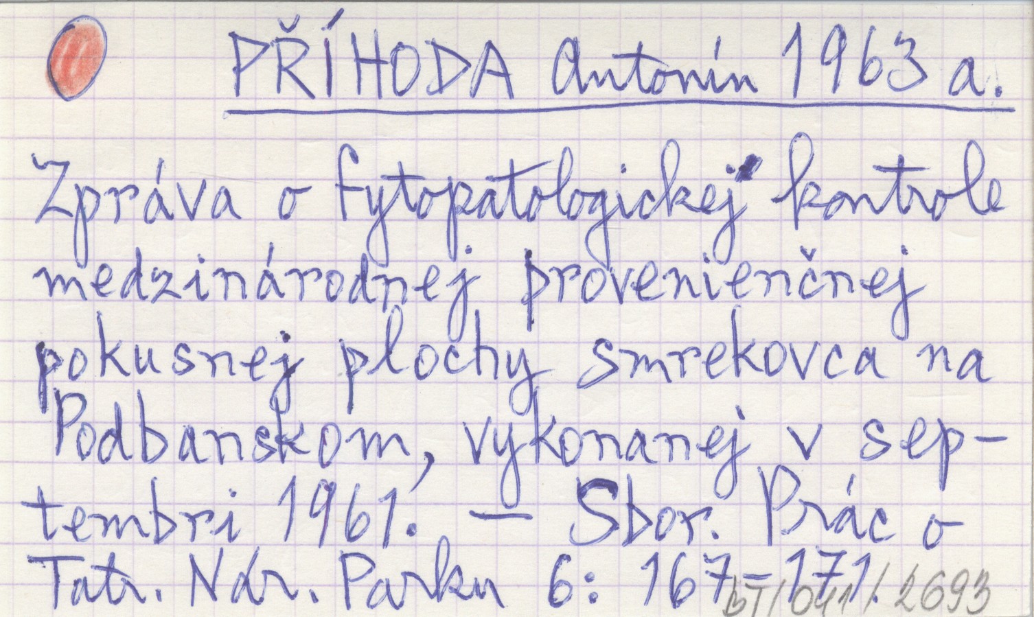 PŘÍHODA Antonín 1963 a Zpráva o fytopatologickej kontrole medzinárodnej provenienčnej pokusnej plochy smrekovca na Podbanskom, vykonanej v septembri 1961.