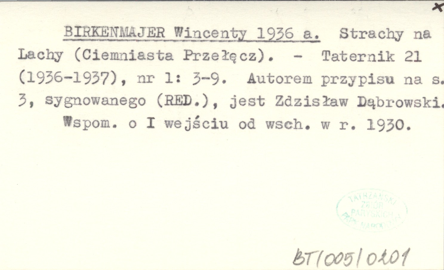 BIRKENMAJER Wincenty 1936 a Strachy na Lachy (Ciemniasta Przełęcz).