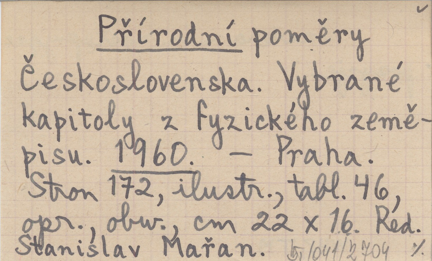 RED: MAŘAN, Stanislav. ; Přírodní poměry Československa. Vybrané kapitoly z fysického zeměpisu. 1960