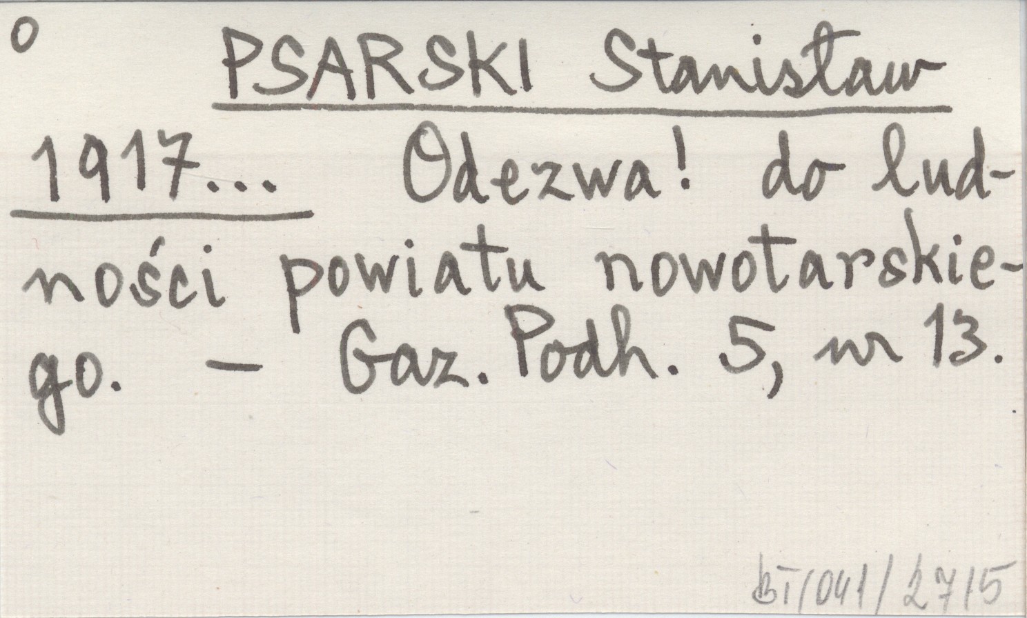 PSARSKI Stanisław 1917... Odezwa! do ludności powiatu nowotarskiego.