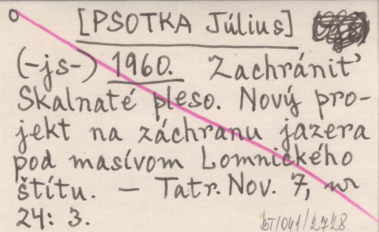 (-js-) [PSOTKA Július] 1960 Zachrániť Skalnaté pleso. Nový projekt na záchranu jazera pod masívom Lomnického štítu.