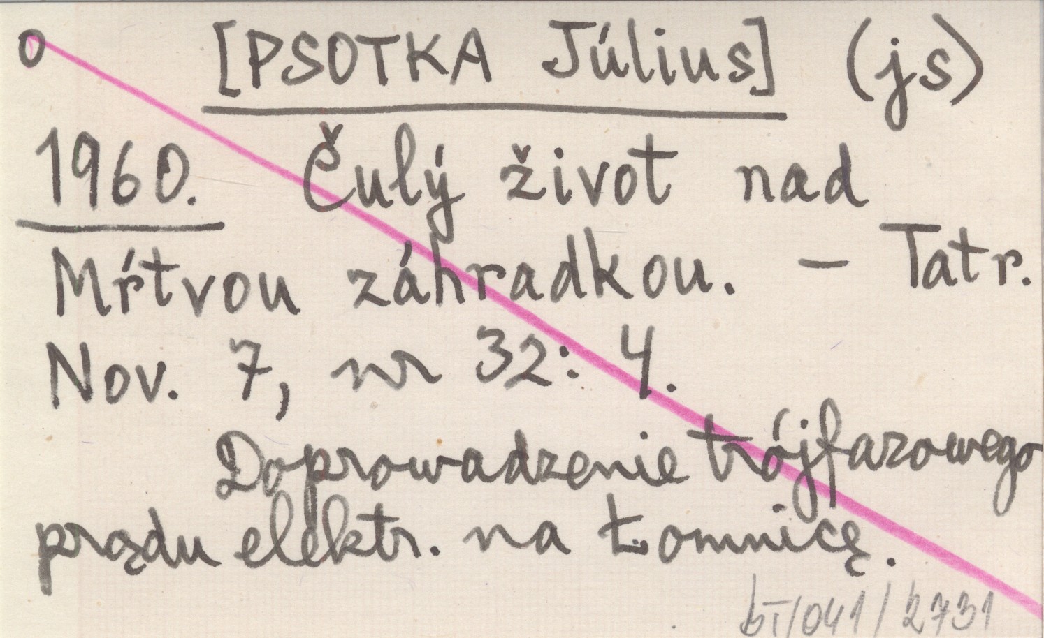(js) [PSOTKA Július] 1960 Čulý život nad Mŕtvou záhradkou.